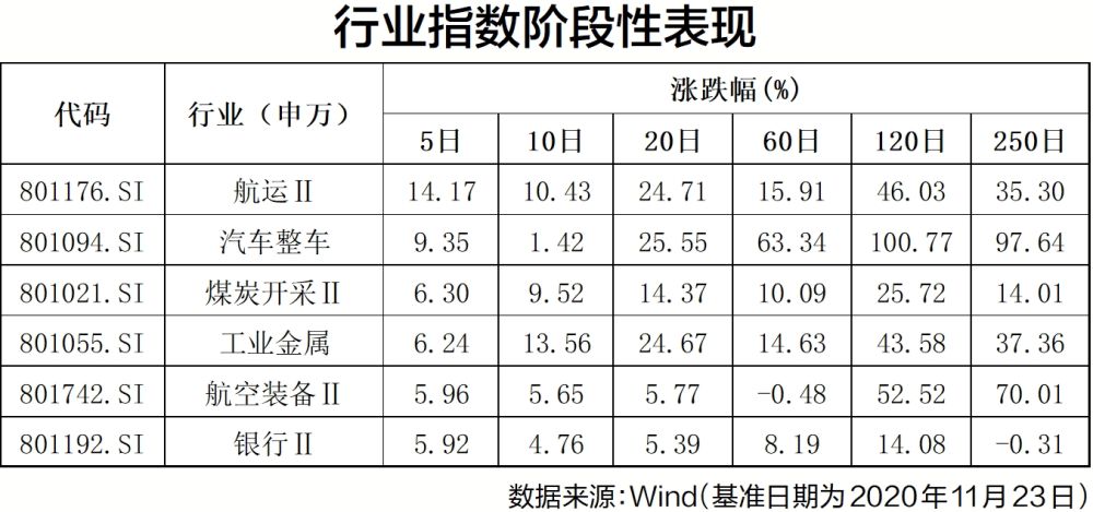 业内人士指出,需求的增长叠加估值优势,是近期周期类行业表现强势的主要原因。川财证券研究所所长、首席经济学家陈雳对《经济参考报》记者表示,类似煤炭、钢铁等低估值、顺周期板块,业绩优良同时今年以来涨幅较小,近期大宗商品价格普遍出现上涨,对利润形成提振作用。同时临近年底,资金风险偏好降低,低估值板块有望受益。以煤炭为例,这类低估值板块今年以来涨幅较小,同时三季度以来业绩明显改善,近期受供暖补库存影响,整体需求量较大。