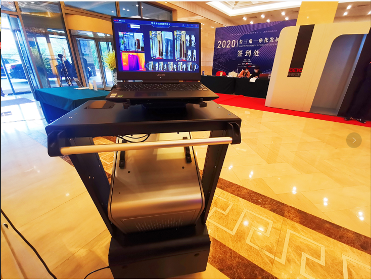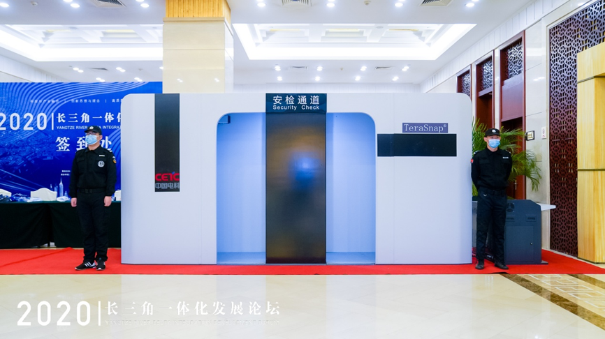 活动现场,一个外观类似“白房子”的“黑科技”产品吸引了众多与会者们围观体验:走进这座“白房子”,无需与任何人产生接触,只要正常步行几秒穿越一个安检通道,即可瞬间完成人体测温及安检。安检对象是否携带违禁品、是否发烧等都可一一显示在旁边的屏幕上。非接触安检、非停留测温,据中电博微太赫兹公司工作人员介绍,这款名为“无接触测温安检一体机”的“黑科技”产品,以太赫兹人体安检仪为核心,将红外测温设备与太赫兹人体安检仪相结合,可将原有的安检效率从300人/小时提升至1500人/小时,有效缓解高峰出行人流聚集压力。不仅如此,集成的红外测温模块具有检测精度高、体温筛查快等显著特点,针对体温超标的乘客会进行实时拍照留存,并及时启动声光报警,有效提高防疫和安检工作效率。
