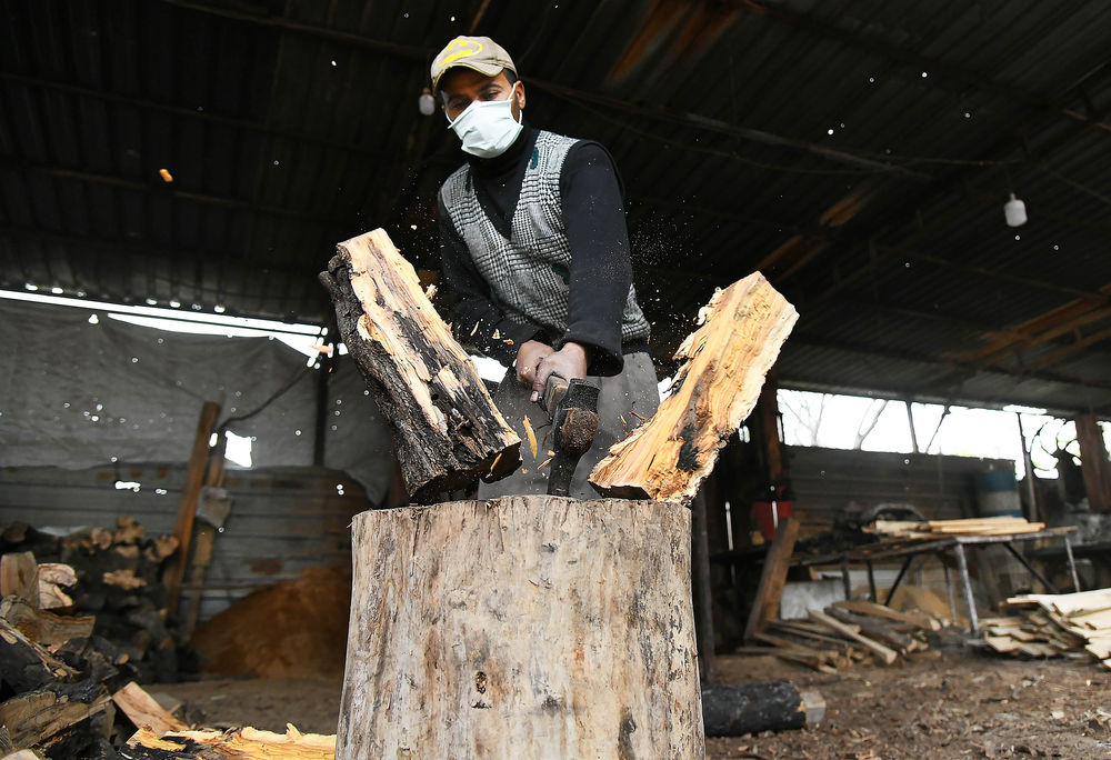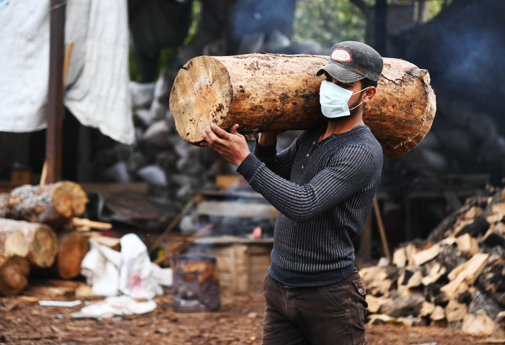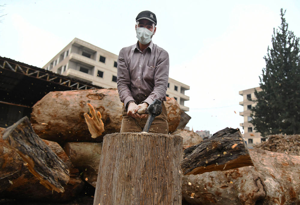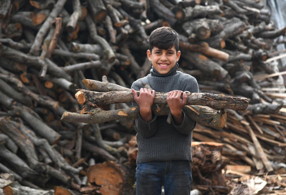 在叙利亚,由于燃料短缺,越来越多的人在寒冷的天气里用柴火取暖。