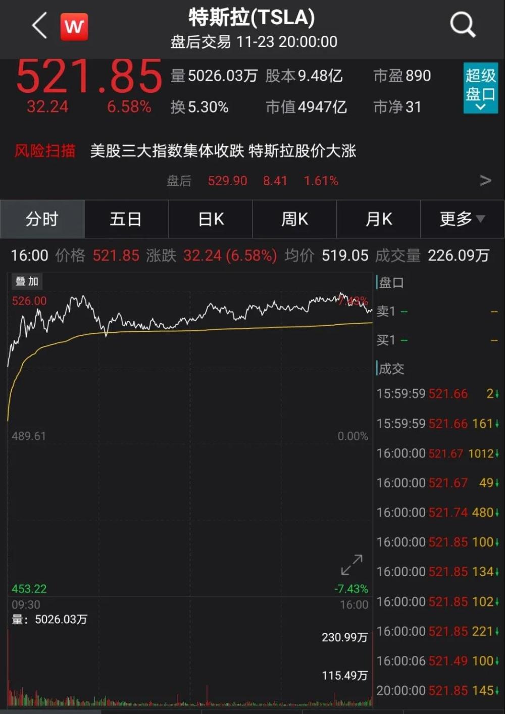 昨夜美股收盘,特斯拉股价涨6.58%。年初至今,公司股价累计涨496%,市值已高达4947亿美元,继续在全球车企中稳居第一。
