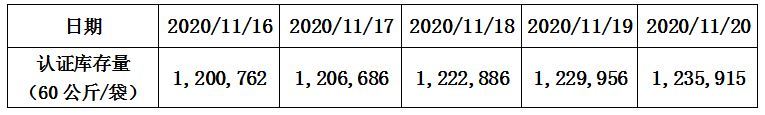 ICE(纽约)“C”型咖啡认证库存量表