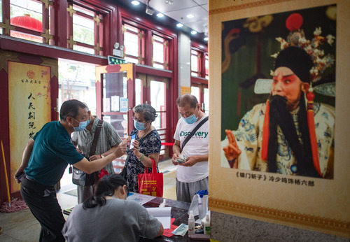 6月26日,武汉市多家剧场恢复开放,市民扫健康码登记后进入武汉市人民剧院。 新华社记者 肖艺九 摄
