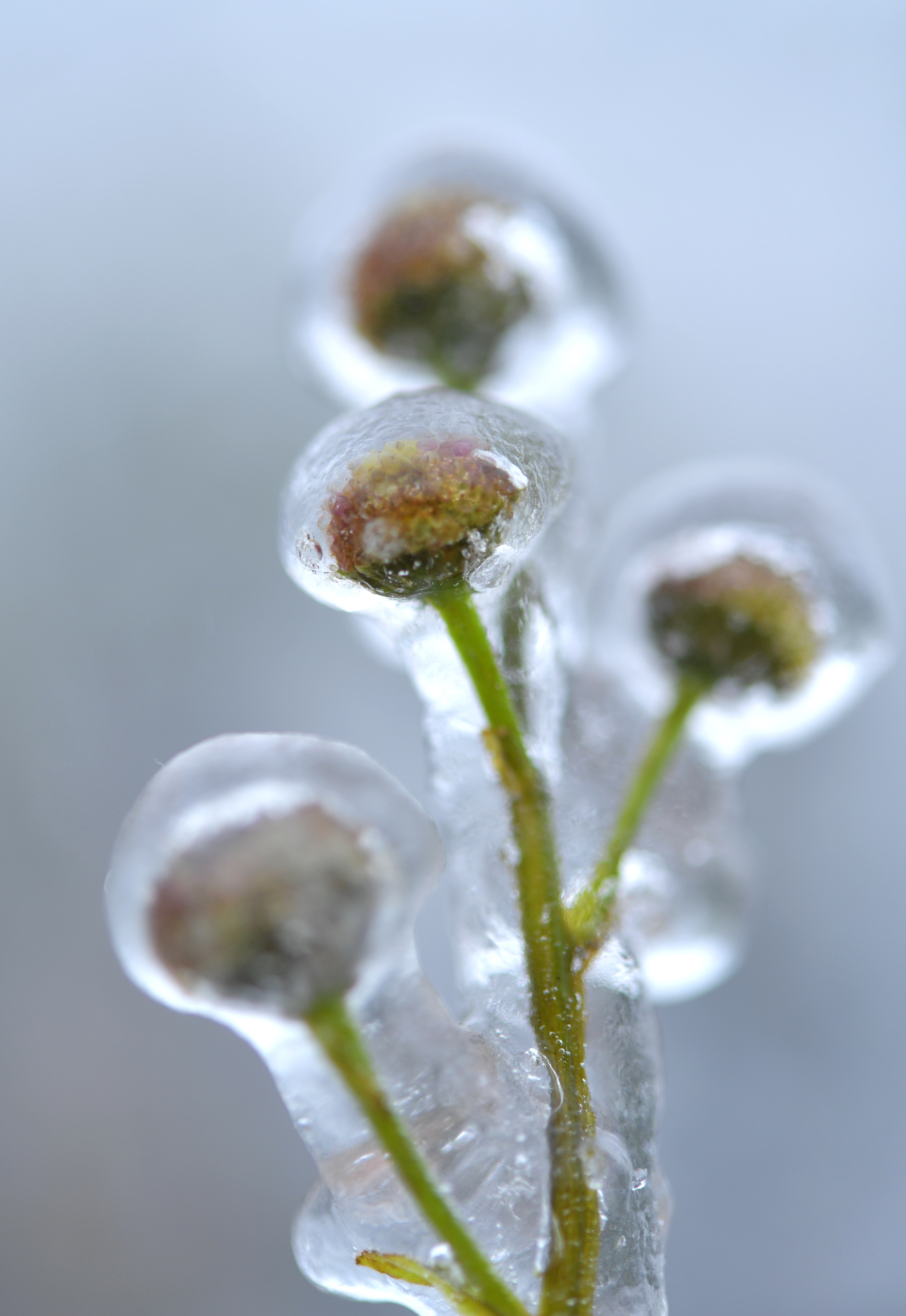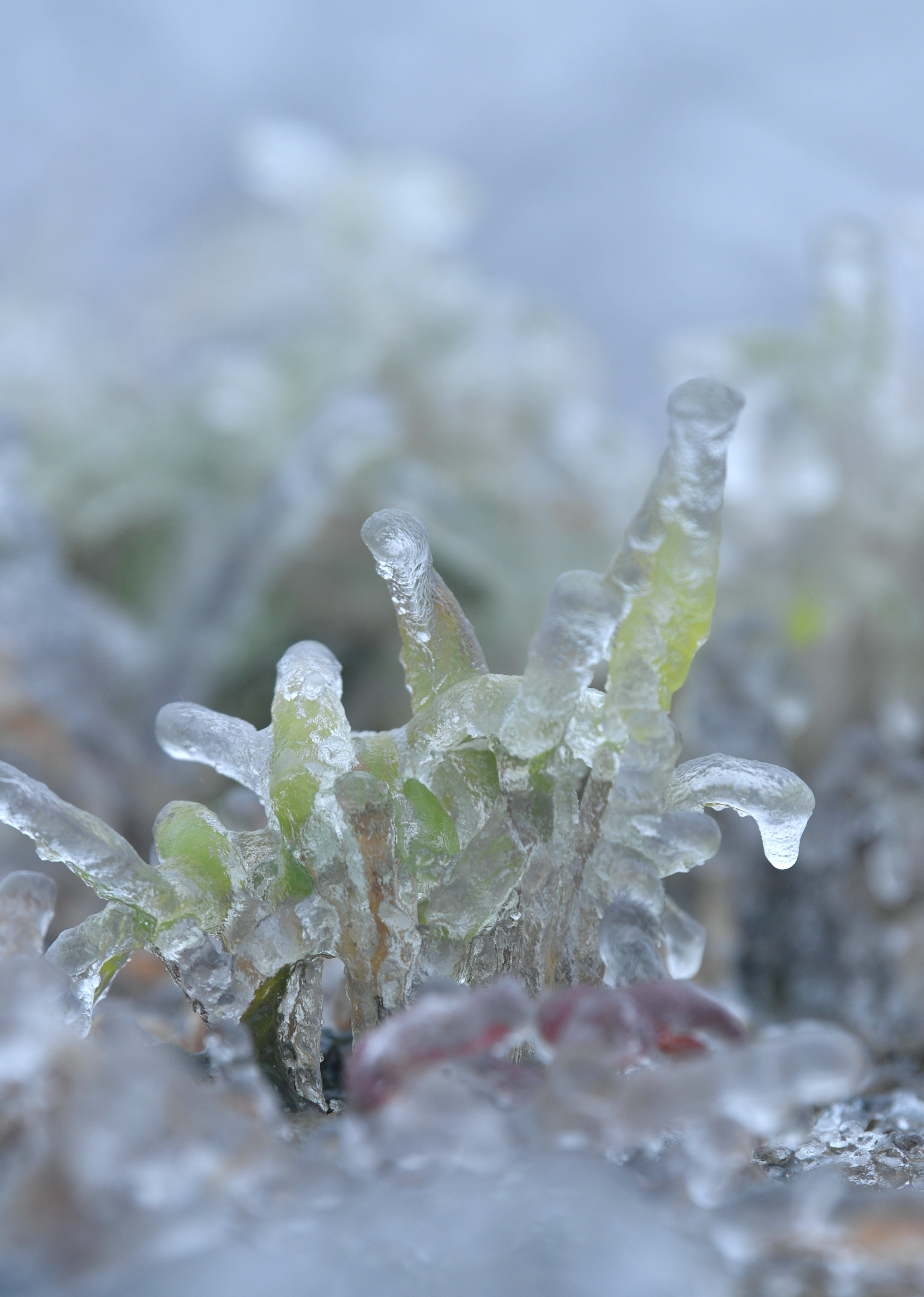 随着气温下降,湖北省恩施土家族苗族自治州宣恩县部分高山地区出现冰冻天气。冰雪世界里的花草被“冰封”于冰凌之中,如同冰雕。