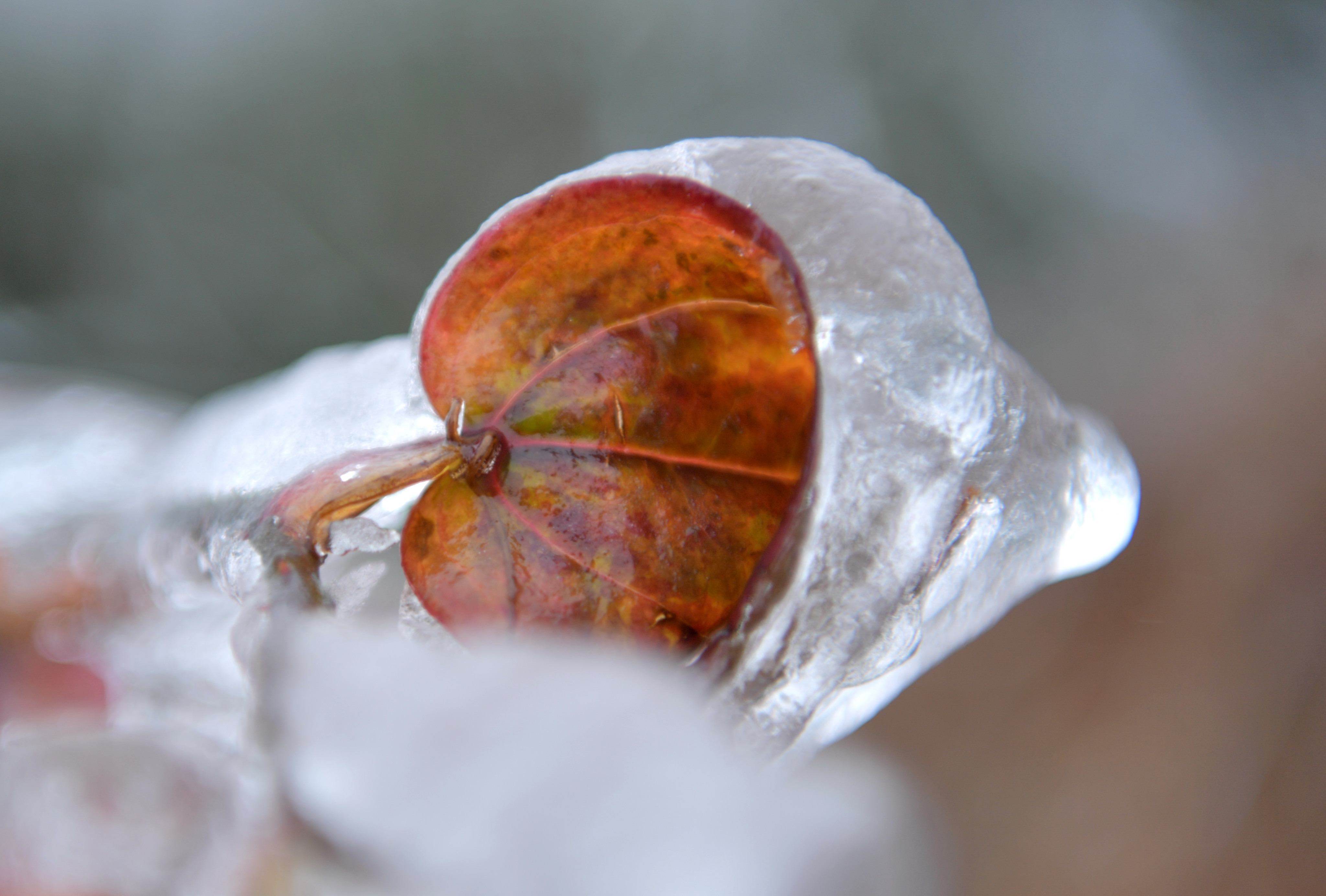 ↑ 这是11月24日在湖北省宣恩县沙道沟镇二坪村拍摄的被“冰封”的树叶。