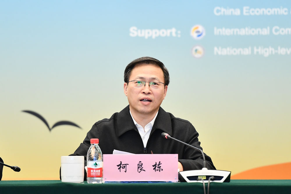 图为中国国际贸易促进委员会副会长柯良栋