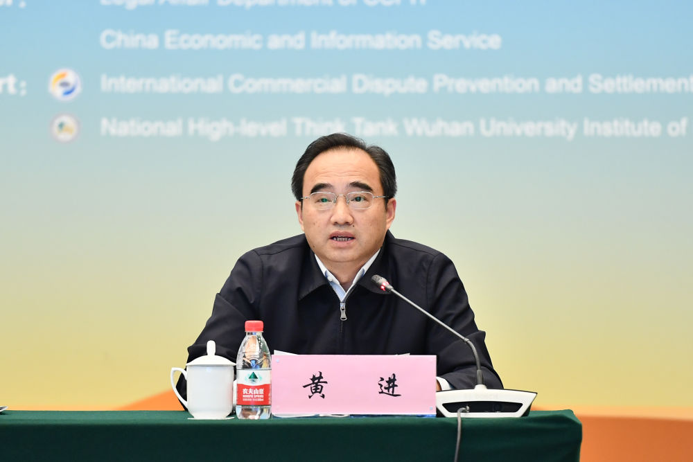 图为中国国际法学会、中国国际私法学会会长黄进