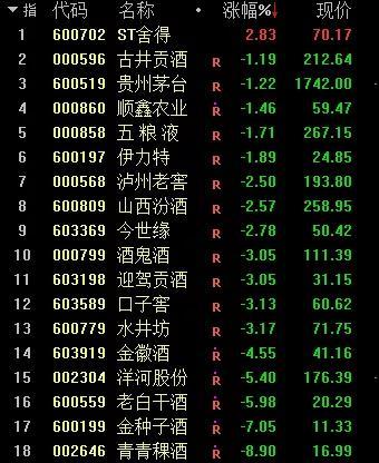 对比当天白酒板块其他个股走势,可谓独树一帜。截至午间收盘,贵州茅台和五粮液分别下跌1.22%和1.71%。