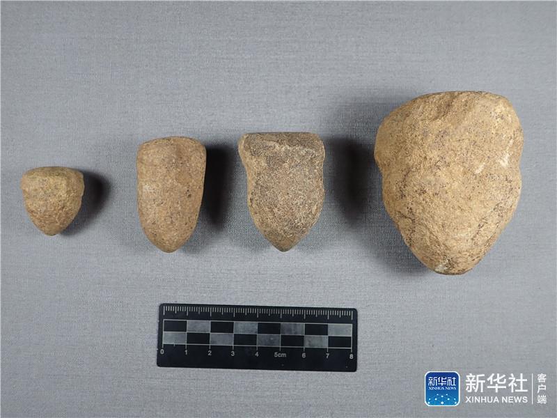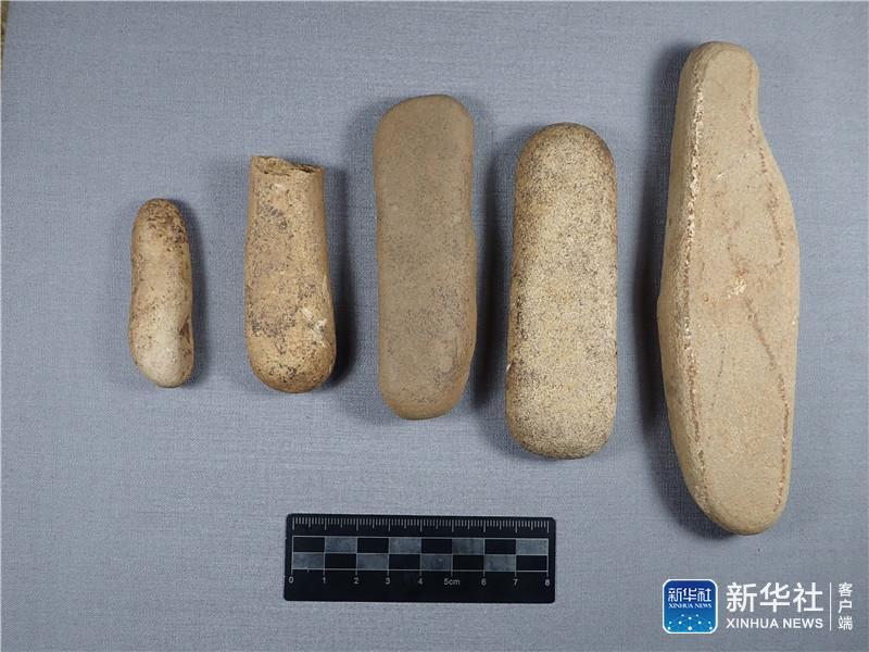 ↑河南南阳黄山遗址出土的石质制玉工具----系列石锉(2019年1月8日摄)。新华社发(河南省文物考古研究院供图)
