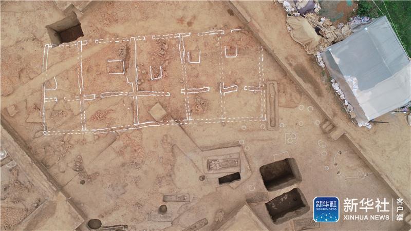 ↑图为河南南阳黄山遗址部分发掘现场航拍图(2019年6月27日摄,无人机照片)。新华社发(河南省文物考古研究院供图)
