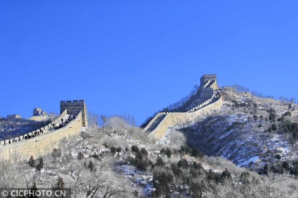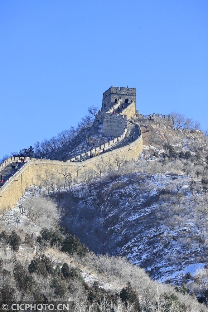 ↑2020年11月22日拍摄的北京八达岭长城雪后景色。CICPHOTO/刘宪国 摄