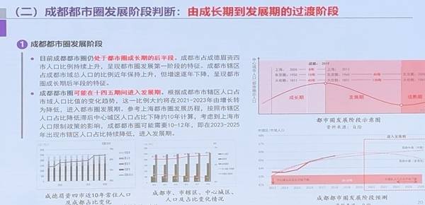 “成都都市圈在文化传播和国际交往已经具有一定的全球地位,在经济组织、科技创新、开放创新、环境宜居等方面有一定差距。”清华同衡规划设计研究院新型城镇化与战略规划研究所常务副所长扈茗认为,发展期中心城市集聚相对迟缓,呈现圈层化差异化分布,分别在距离中心15公里、40公里、70公里和100公里形成不同的空间范围;成熟期要素再次向中心城区进行集聚,目前成都都市圈正处于成长期。