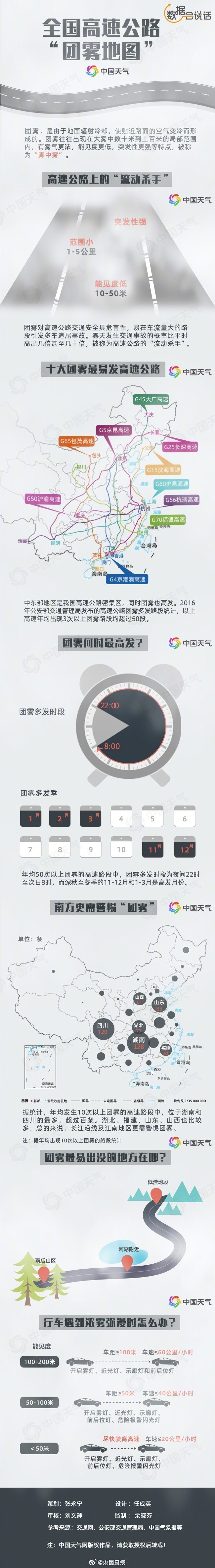 团雾是由于地面辐射冷却,使贴近路面的空气变冷而形成的,往往出现在大雾中数十米到上百米的局部范围内。雾气更浓、能见度更低、突发性更强。中东部地区是我国高速公路密集区,同时团雾高发。行车遇到浓雾弥漫怎么办?戳↓