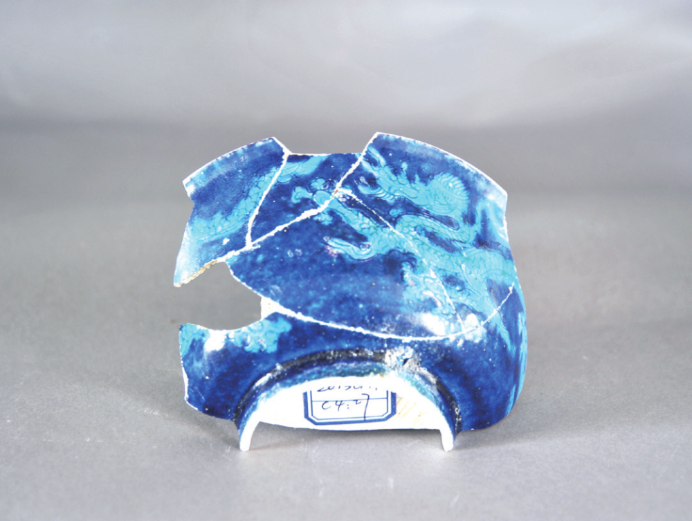明代景德镇窑蓝釉刻花龙纹碗(成都文物考古研究所供图)