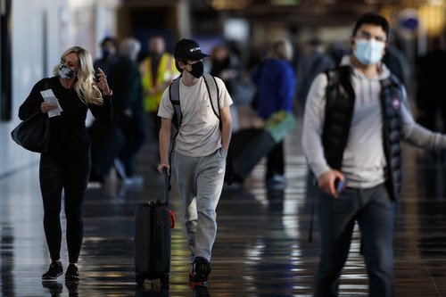 11月24日,戴口罩的旅客走在美国弗吉尼亚州阿灵顿的里根国家机场。新华社发(沈霆摄)