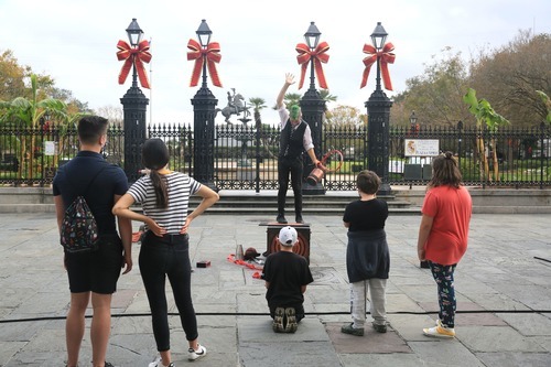 11月25日,在美国路易斯安那州新奥尔良,人们在街头观看表演。新华社发(魏兰摄)