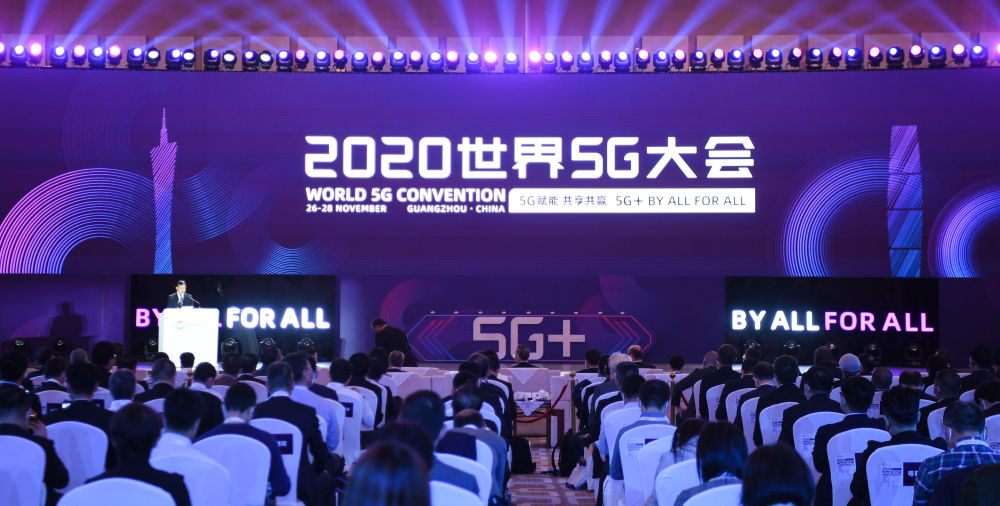 这是11月26日的2020世界5G大会开幕式现场。当日,2020世界5G大会在广州开幕。大会由展览、主论坛和10个高峰论坛组成。大会期间,全球信息通信领域科学家、知名5G服务提供商、5G行业应用商,将围绕5G领域的前沿技术、产业趋势、创新应用等方面开展交流与讨论。记者邓华摄