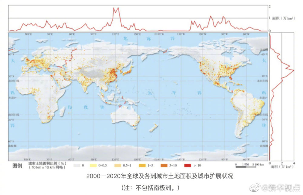 科技部27日发布的《全球生态环境遥感监测2020年度报告》显示,21世纪全球城市持续快速扩展,土地面积由2000年的23.90万平方公里增加到了2020年的51.98万平方公里,扩展了117.49%。第二个十年相对第一个十年,具有更快的城市扩展速度。快速扩展区域集中于亚洲和北美洲,分别为13.37万平方公里和7.84万平方公里。(记者温竞华)