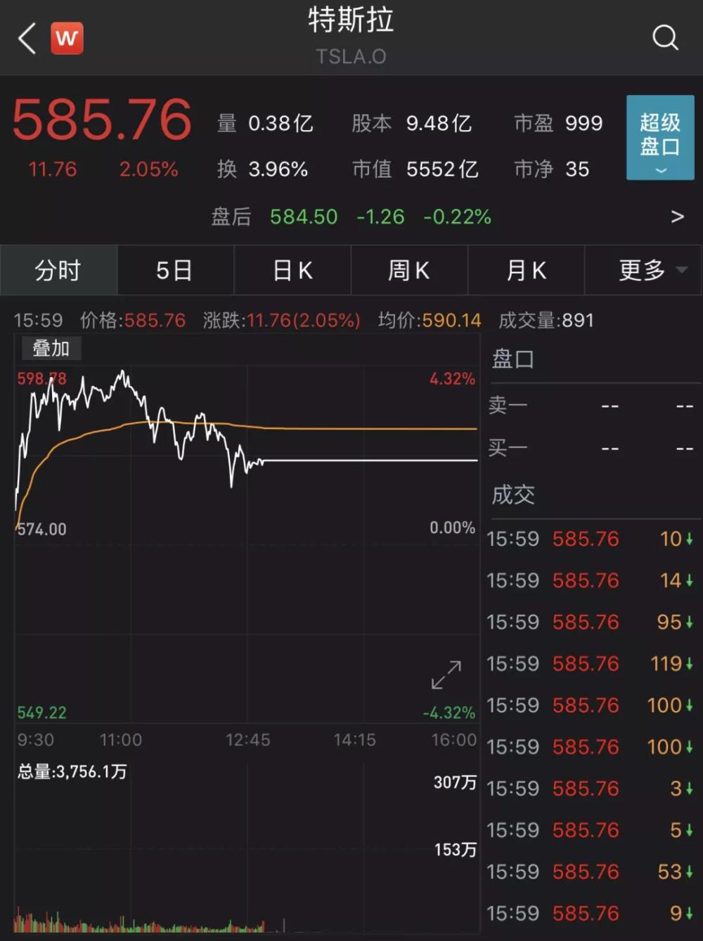 (小标题)特斯拉市值达5552亿美元