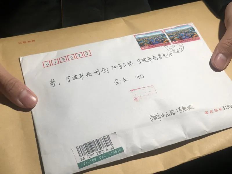 11月27日上午,邮政储蓄的工作人员专门给浙江省宁波市慈善总会送来了一封厚厚的挂号信。信的署名是“然然”,落款地址则是不存在的宁波市中山路1号。