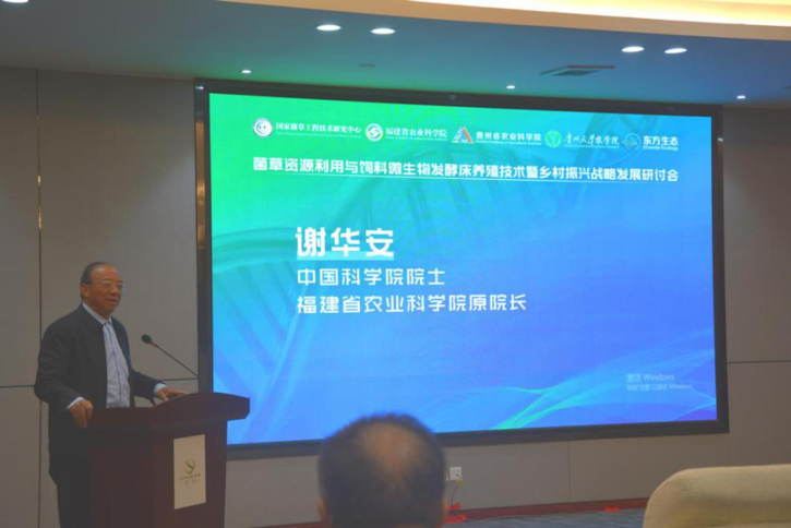 11月27日,“菌草资源利用与饲料微生物发酵床养殖技术暨乡村振兴战略发展研讨会”在贵州省贵阳市召开。贵州省人大常委会副主任何力,贵州省政协副主席左定超,中国科学院院士谢华安,国家菌草工程技术研究中心首席科学家林占熺,贵州省政协教科卫体委主任赵宇飞,福建省农业科学院原院长刘波,贵州省农业科学院副院长、九三学社贵州省委主委黄宗洪,贵州省农业农村厅副厅长张元鑫,贵州省政府参事、贵州大学原副校长金道超,福建农林大学农学院院长曾任森,东方生态(北京)环境治理科技有限公司董事长费广泰等省内外有关方面领导、专家学者和企业家共计100余人参加了本次研讨会。