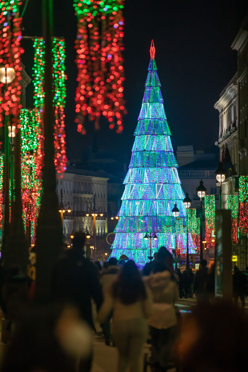 ↑这是11月28日在西班牙马德里拍摄的灯光圣诞树。