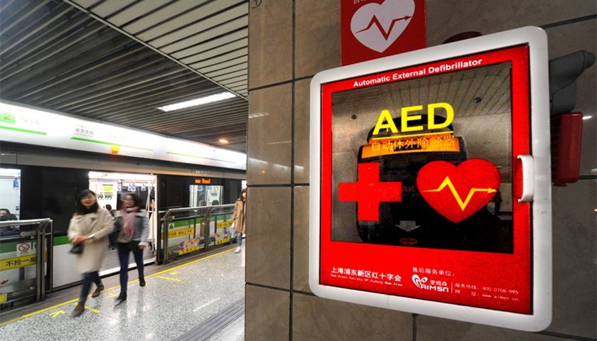AED(自动体外除颤仪)被称为应对突发心脏骤停的“救命神器”,近年来,给公共场所尤其是人流量较大的交通站点配备AED设备已为舆论多番呼吁。