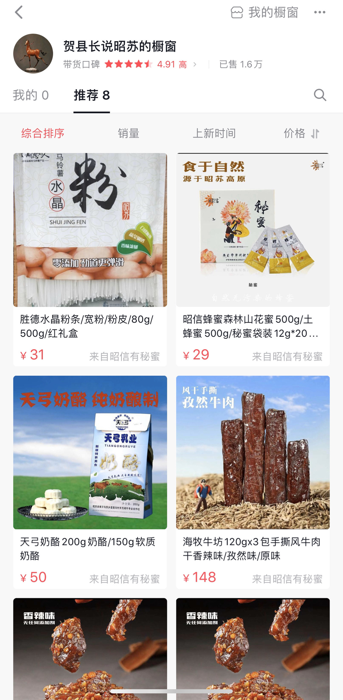 抖音账号“贺县长说昭苏”店铺中,很多当地的农产品在售