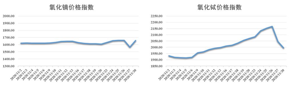 图2 氧化镝、氧化铽价格指数月度运行图