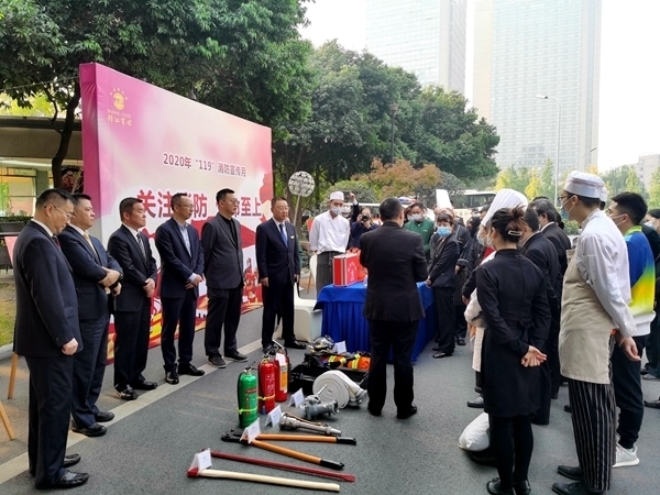 11月9日,在“消防宣传进社区”活动中,宾馆在宾馆东大门搭建宣传桁架,展示消防设备、抢险器材,安排专人向客人、员工宣讲消防安全知识,发放消防宣传手册和印有消防Logo的小礼品。本次活动,发送消防宣传小礼品及消防宣传单近1000份,500余名社区群众及宾馆客人现场接受了消防宣传教育。此外,旅投集团运营管理部副部长黄伟、锦江酒店公司安全经理牛占乐,以及公司领导、百余名客人、员工参与了此次活动。
