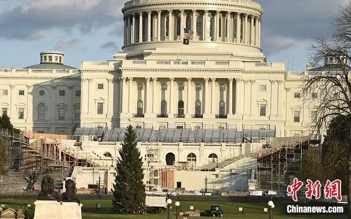 当地时间11月23日,美国总务管理局局长墨菲致信美国当选总统拜登,将为其提供总统过渡程序所需的资源和相关服务。图为美国国会西侧广场,现场正在搭建2021年1月总统就职典礼的观礼台。 中新社记者 陈孟统 摄