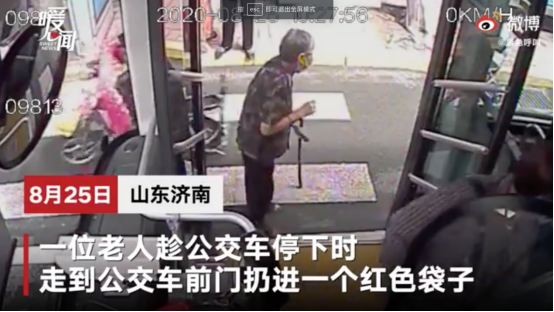 司机行驶到济南大厦站点,打开车门后,一个85岁的老奶奶“扔”上来一袋红色袜子就走了,她还一直喊着“有信,里面有信”。