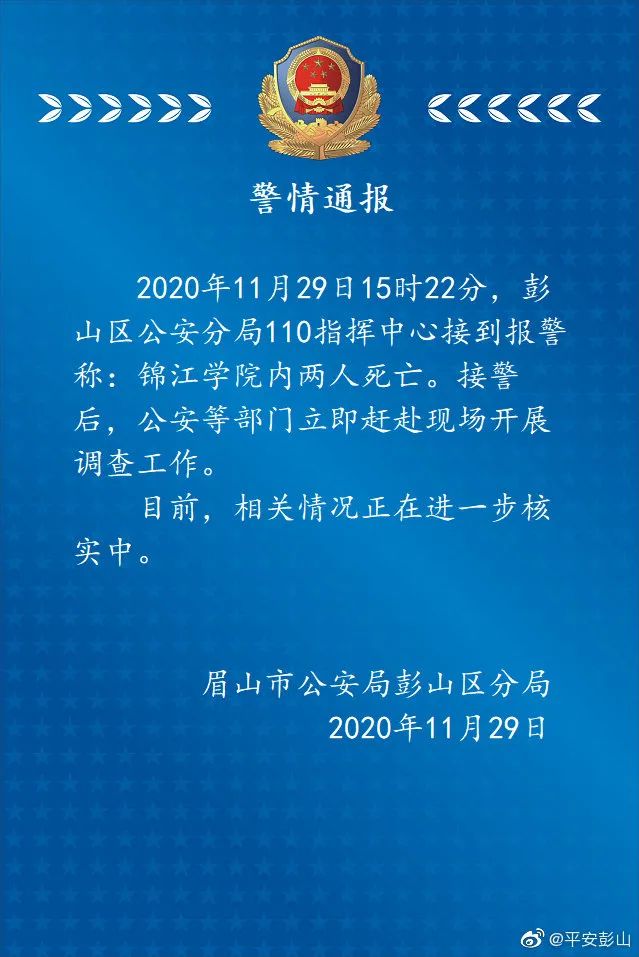 11月29日,网传四川大学锦江学院内有两名学生非正常死亡,此事引发众人关注。