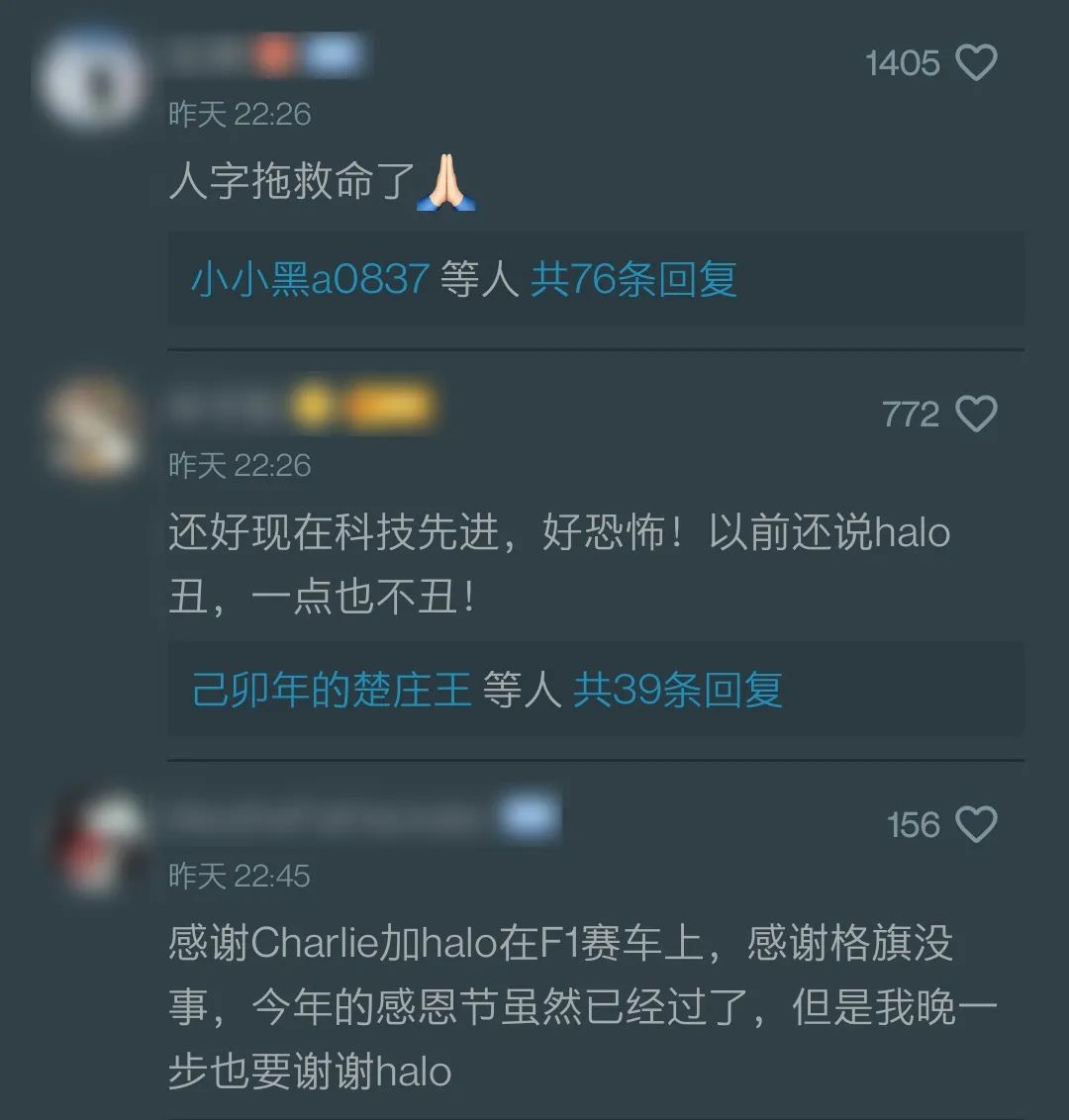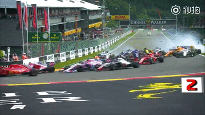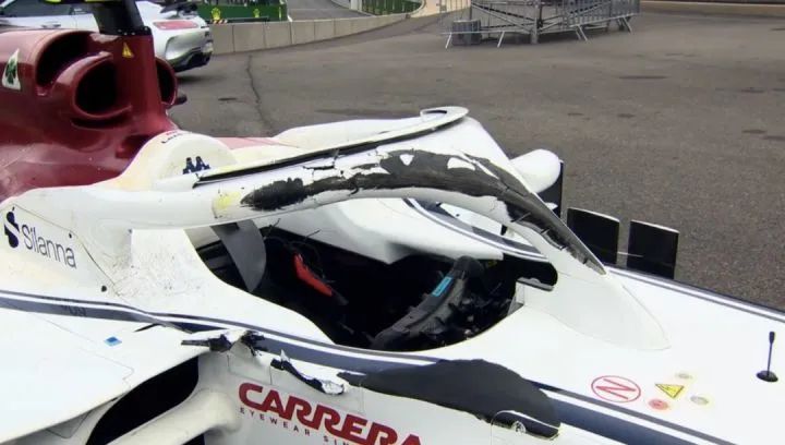 赛车底盘直接从勒克莱尔的头盔顶部擦过。