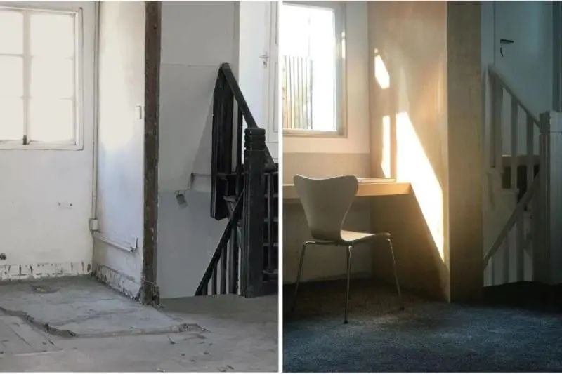 同样顶天立地的书架,拱形落地窗,如《雪庐》中的雪景一般白净的墙壁,小小的庭院里被雨水打湿的长椅和藤蔓……