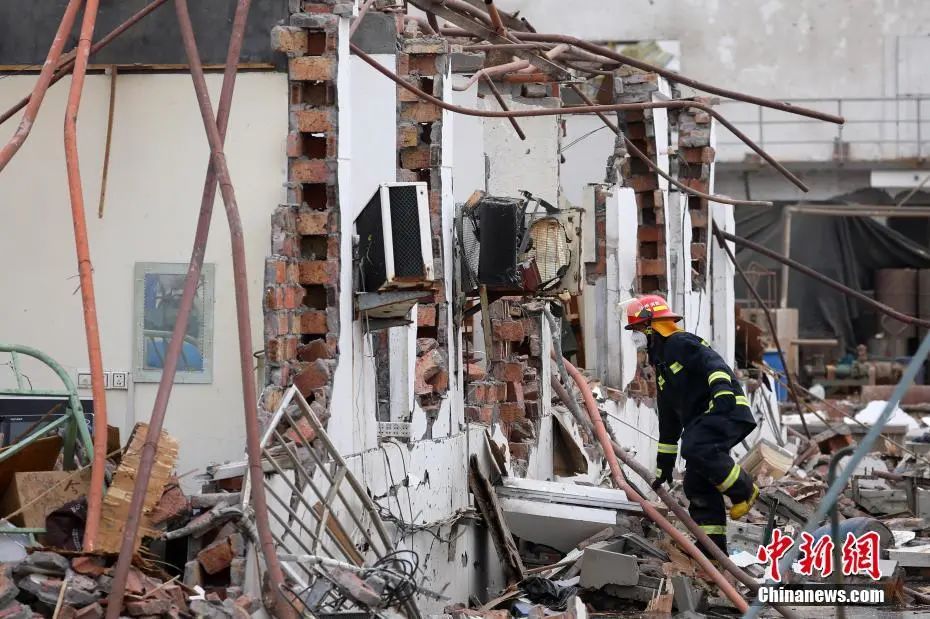 资料图:2019年3月22日,消防员在江苏盐城响水县陈家港镇江苏天嘉宜化工有限公司爆炸核心周边开展救援工作。中新社记者 泱波 摄