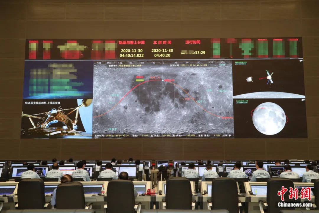 记者从中国国家航天局获悉,11月30日,中国探月工程嫦娥五号任务飞行控制团队按计划实施嫦娥五号探测器着陆器和上升器组合体与轨道器和返回器组合体分离。凌晨4时40分,在科技人员精确控制下,嫦娥五号探测器组合体顺利分离。