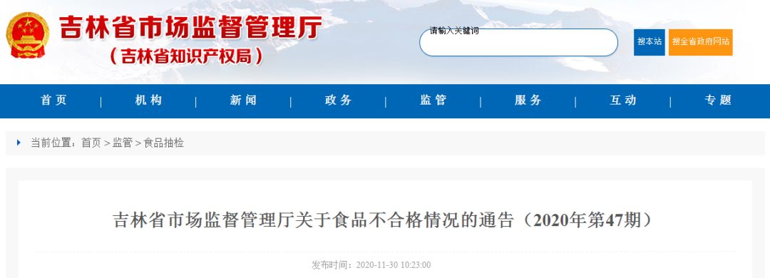 原文标题:吉林省市场监督管理厅关于食品不合格情况的通告(2020年第47期)