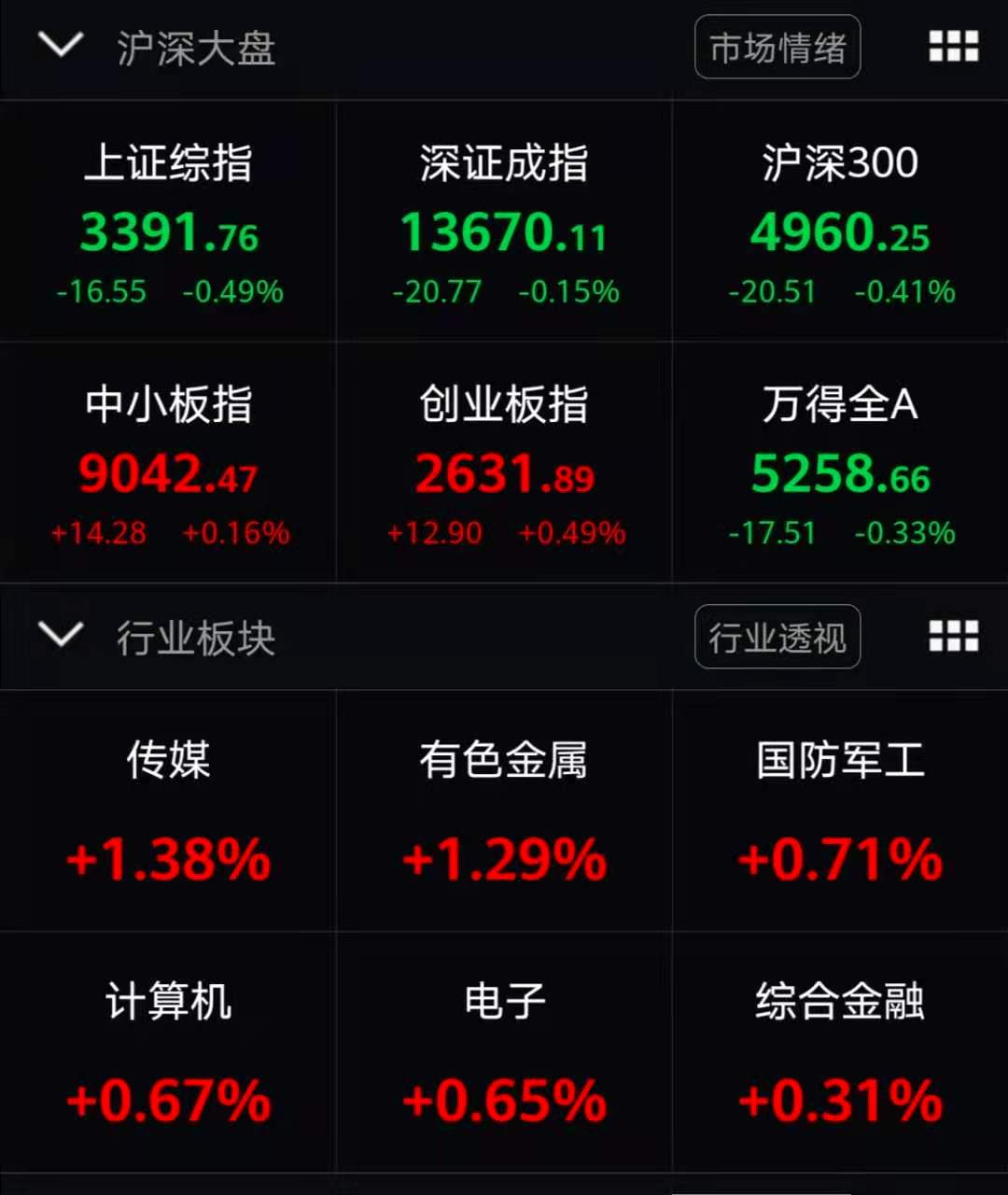 股指冲高回落之下,前期热门的银行、证券和保险等金融蓝筹也下行,周期板块内部分化明显,钢铁股下跌,但有色金属板块走势依然强势,有机硅、煤炭等板块延续反弹态势。此外,半导体、新能源汽车、可降解塑料等板块也出现轮动拉升。