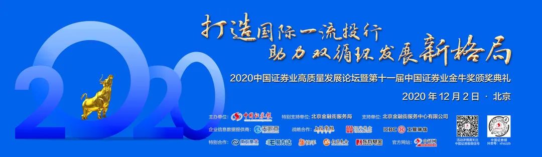 围绕“打造国际一流投行 助力双循环发展新格局”这一主题,中国证券报拟于2020年12月2日下午在北京金融街举行2020中国证券业高质量发展论坛。所有奖项将在论坛期间隆重揭晓。