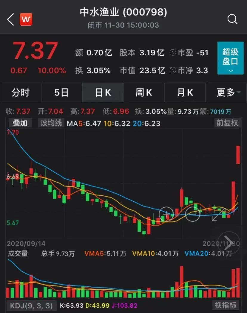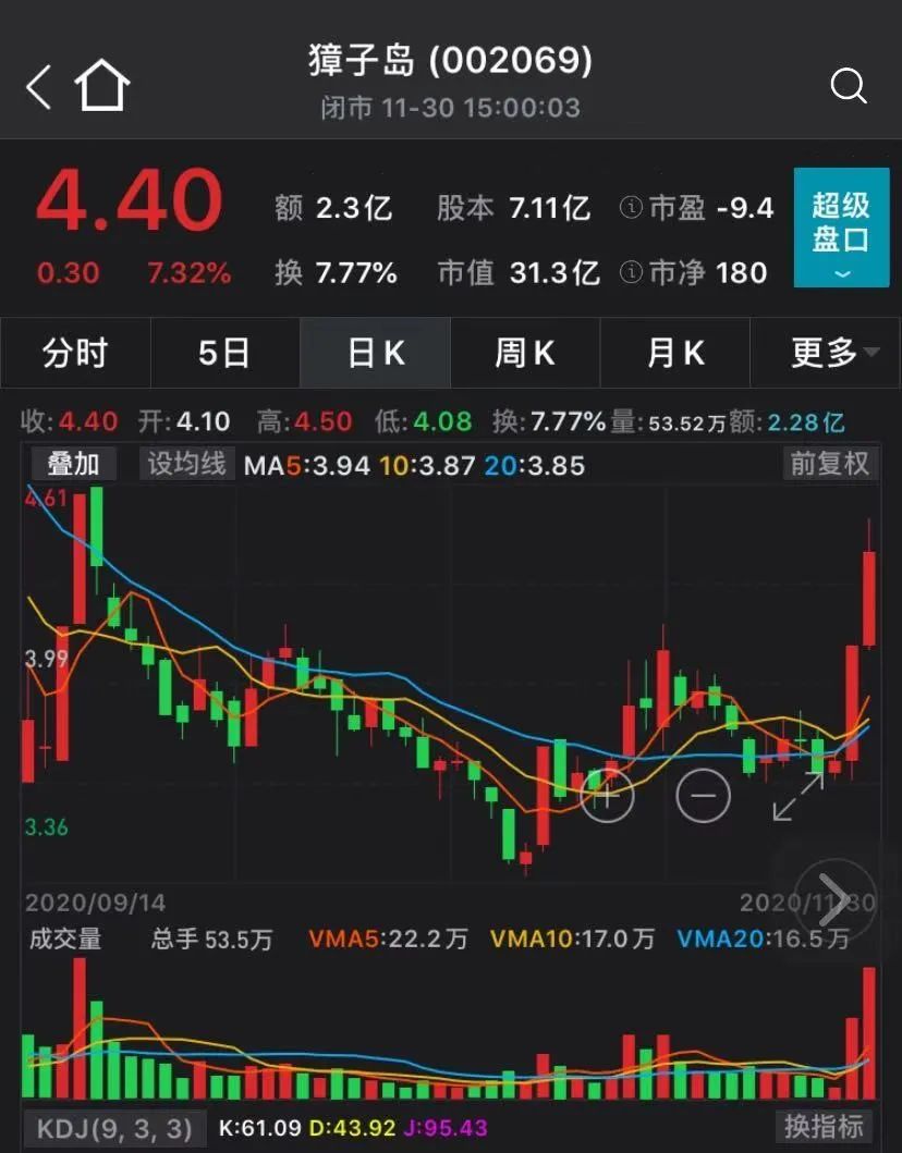 獐子岛继上周五涨停后,今日最高涨幅逼近涨停,尾盘收涨7.32%。