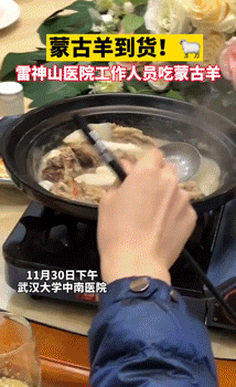 羊肉来了!武汉雷神山医院工作人员吃上蒙古羊。