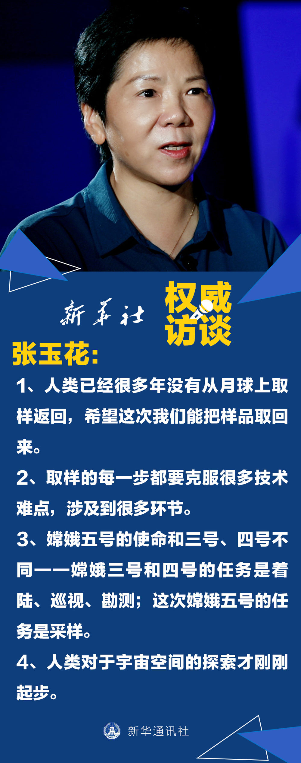 张玉花:因为首先你得奔月成功,得绕月成功,得落月成功,还得表取和钻取机构都得工作正常,样品封装也正常,还得从月面起飞成功,还得在月球轨道交会对接成功,还得月地返回成功,这每一步成功以后,才能把样品容器交到我们科学家手里,所以它是很难的。这些每一步里面都有很多技术难点和技术环节需要克服,涉及到方方面面,最终都做好了才能保证成功。一般的国家可能自己都组织不起来这么一次大型探月任务。