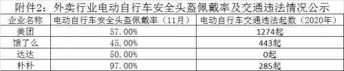 2、外卖行业电动自行车安全头盔佩戴率及交通违法情况公示