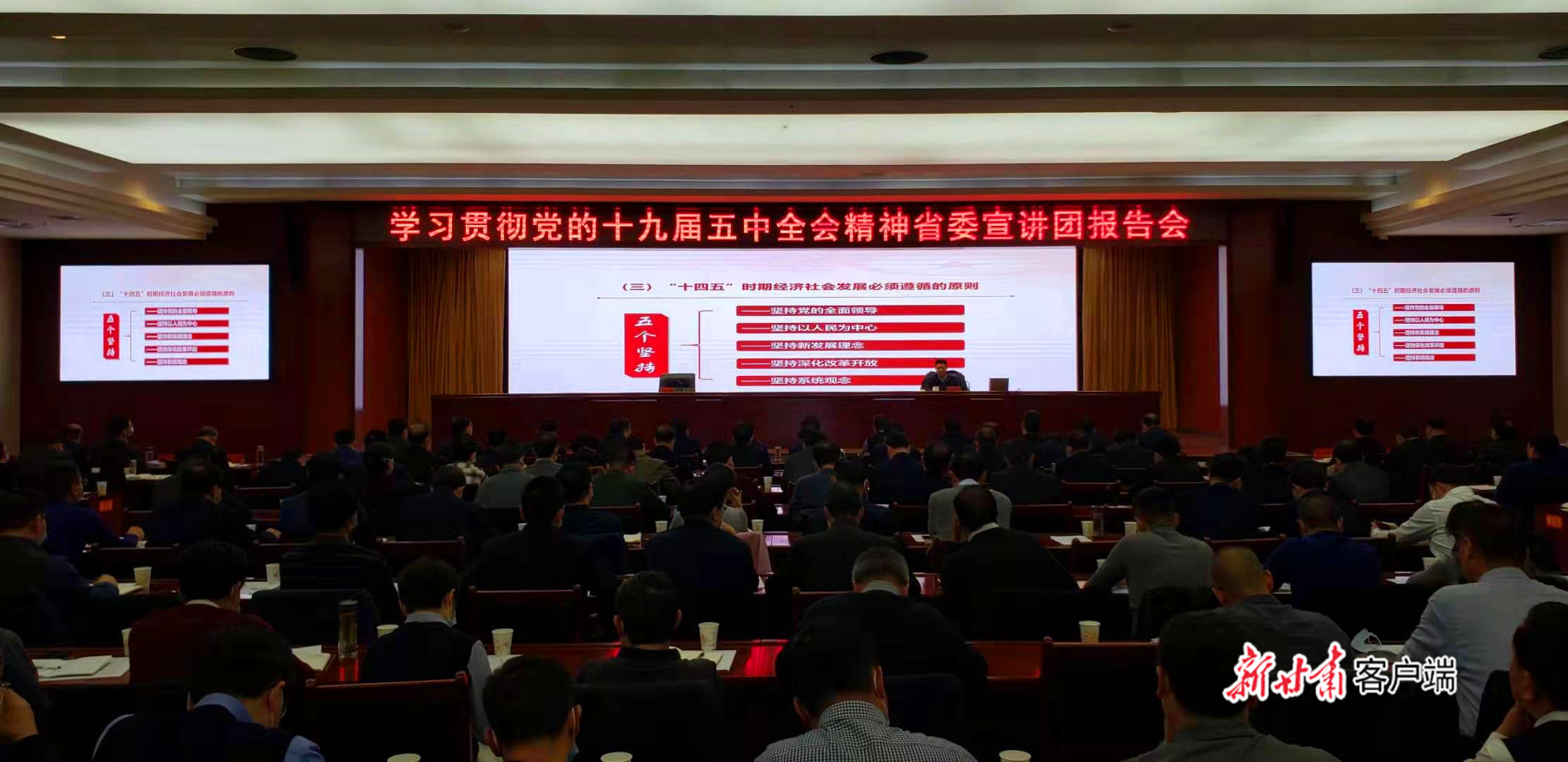 新甘肃客户端陇南讯(新甘肃·甘肃日报记者陈多)11月30日下午,学习贯彻党的十九届五中全会精神省委宣讲团报告会在陇南市举行。省委宣讲团成员、省委宣传部常务副部长、省电影局局长高志凌作宣讲报告。