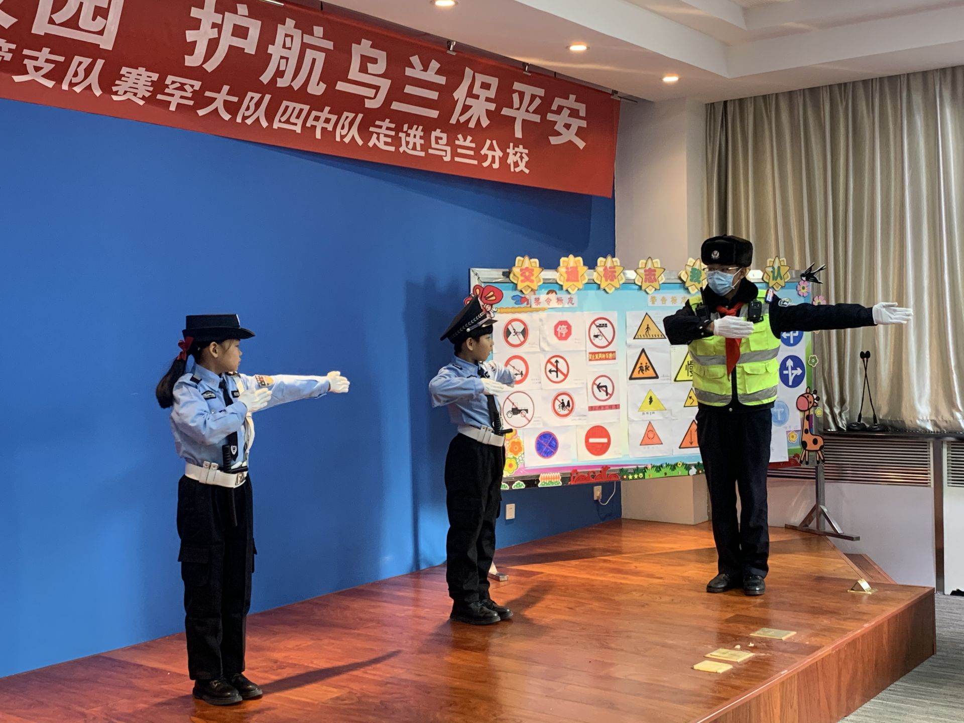 为了进一步增强学生的交通安全意识和自我防护意识,预防和减少交通事故,教育学生关爱生命、拒绝交通违章、严防道路交通事故、打造平安校园, 12月1日下午,呼和浩特市公安局交管支队赛罕区大队四中队交警志愿者走进敕勒川绿地小学乌兰分校开展了“交通安全进校园 护航‘乌兰’保平安”主题活动。该校在活动现场聘任了交通安全“校外辅导员”,交警志愿者为学生们讲解了认识交通标识牌,开展了交通安全进课堂活动等。授课中,交警志愿者还积极倡导学生们通过开展“小手拉大手,安全路上走”活动,让家长们遵守交通安全法规,督促和提示身边的亲朋好友拒绝酒后驾驶、无证驾驶、超速、超员、超载等交通违法行为。之后还进行了 “一分钟小交警”岗楼实践体验活动,旨在通过教育一个学生,影响一个家庭,辐射整个社会,将道路交通安全知识送进千家万户,增进全民交通安全意识和减少交通违法行为。
