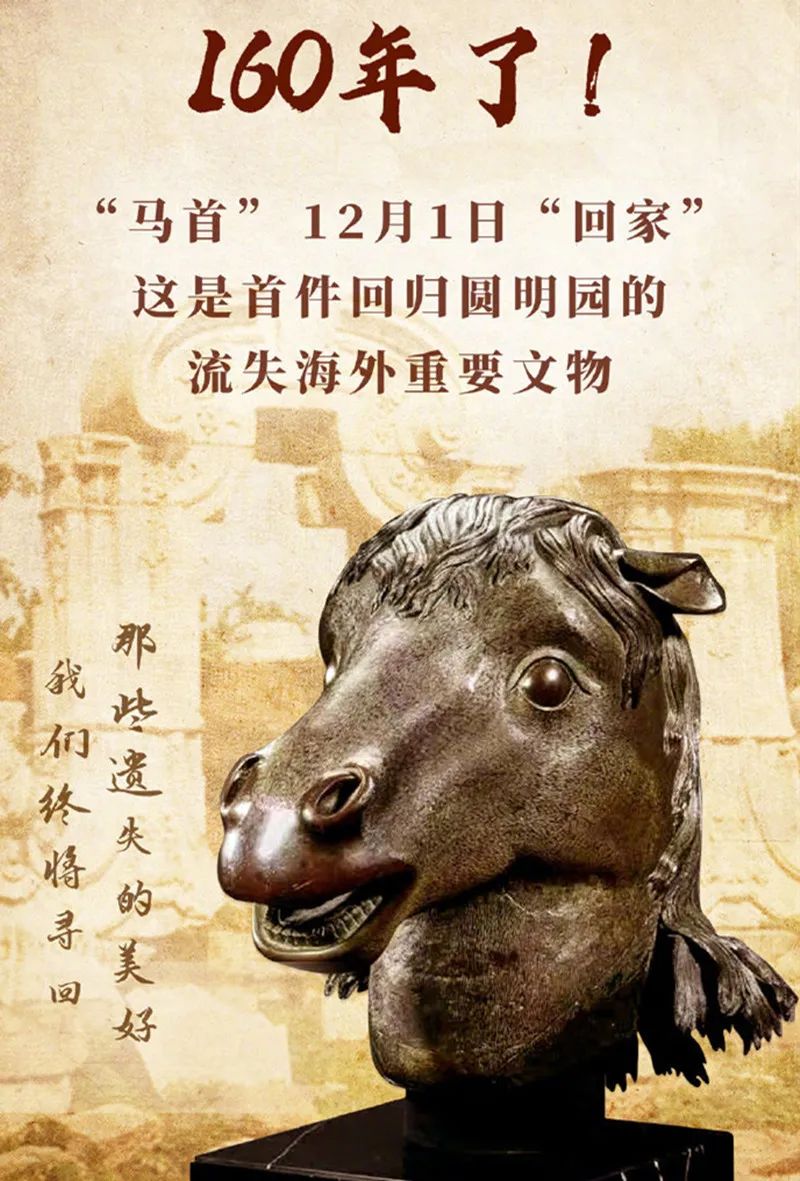 160年前,圆明园惨遭焚掠,从此下落不明的马首铜像,于今日(12月1日)正式回归圆明园。这成为第一件回归圆明园的流失海外重要文物,同时也标志着马首不再是一件皇家私藏,而是属于全体人民的文化遗产。