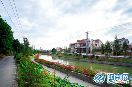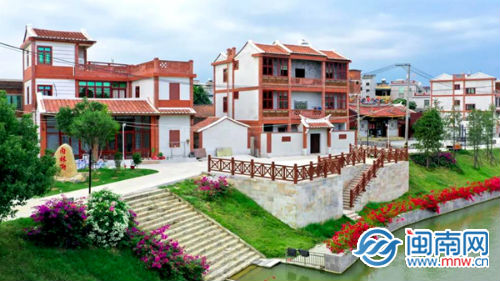 在九十九湾北溪段内林古街,红砖、白墙、人字披瓦等古香古色的闽南建筑,远望古街,就感受到了其独特的闽南文化韵味。与九十九湾的河水、红花、绿叶相互映衬,构成一幅美丽的画卷。