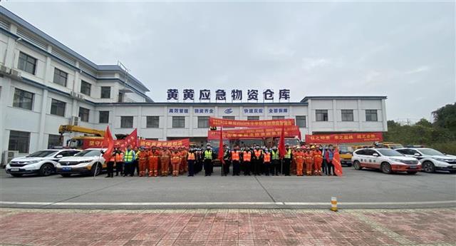 演练模拟黄黄、武英高速突发低温凝冻天气,局部路面积雪桥梁结冰,车辆通行受阻,收费站入口出现交通滞留的场景。黄黄运营公司迅速启动恶劣天气应急预案,黄黄、武英高速党总支根据应急预案设定的流程,协调辖段路政、高警部门和施救、养护施工企业按照各自分工,共同融冰除雪和疏堵保畅。