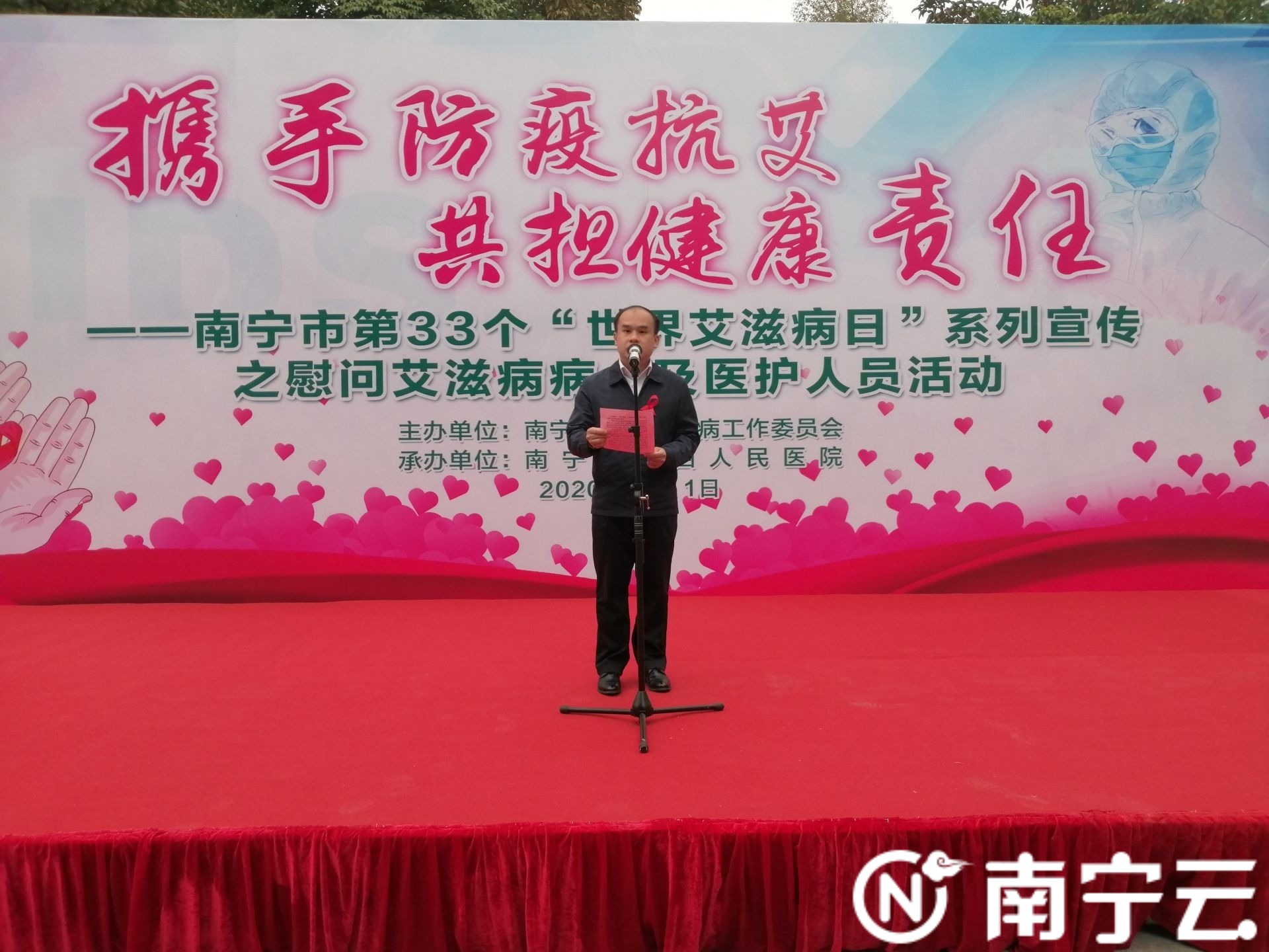 南宁云—南宁新闻网讯(记者 李琴 实习生 甘妍)为营造良好社会氛围,深入推进防治艾滋病攻坚工程,12月1日,南宁市第四人民医院举行了2020年“世界艾滋病日”系列宣传活动。南宁市防艾委办公室主任、卫生健康委唐驰副主任等领导及南宁市第四人民医院医护人员代表150余人参加活动。