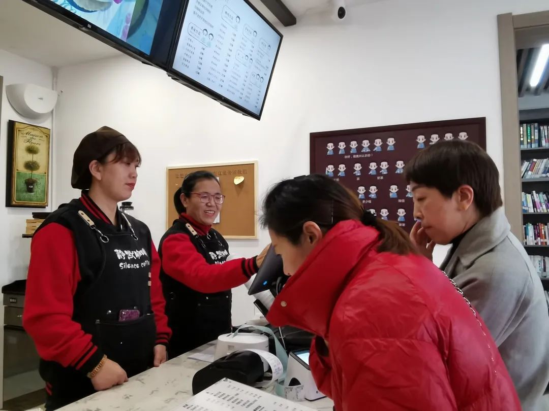 店里生意忙起来,王丽超老师帮曹瑞华点单。